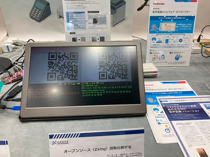 多くの組込機器で採用実績のある、QRコード、DataMatrixコード、一次元バーコード、GS1Databarのソースコードライブラリー製品を、ルネサス社製RZ/A2Mを使用した評価ボード「GR-MANGO」にて、各コードをマルチリードし、またオープンソースライブラリーであるZXingとの比較するデモを用意しました。実際の性能をお試しいただきました