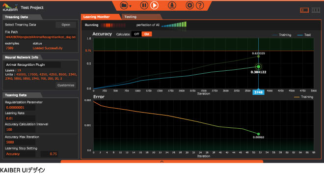 組込みに特化したディープラーニング開発支援ツールです。「KAIBER」はDNN(Deep Neutral Network)の学習および推論の完全独立した2つのエンジンとして機能します。推論実行エンジンは多様な小型デバイスやエッジサーバー、そしてスマートフォンなどの端末アプリケーションに簡単に組み込むことが可能で、独自の画像認識やデータ解析の推論機能を実現できます。