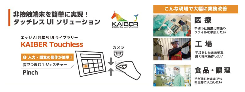 KAIBER Touchless は、タッチパネルやキーボードに触れることなく、空中での文字入力やドラッグ操作を可能にする非接触UI機能開発キットです。