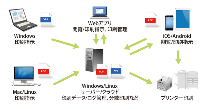 - Windows/Linux サーバー/クラウド 印刷データ管理、ログ管理、分散印刷など